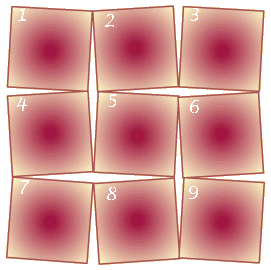 A los cuadrados 1, 3, 5 , 7 y 9 se les aplica una primera rotación en el sentido trigonométrico positivo, es decir en sentido inverso a las agujas del reloj.