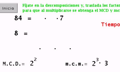 Proceso de aprendizaje: Encontrarás una explicación de la forma de obtener el mcm y el MCD a partir de la desomposición factorial de los números:
