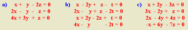 siguientes sistemas de ecuaciones lineales homogéneos: